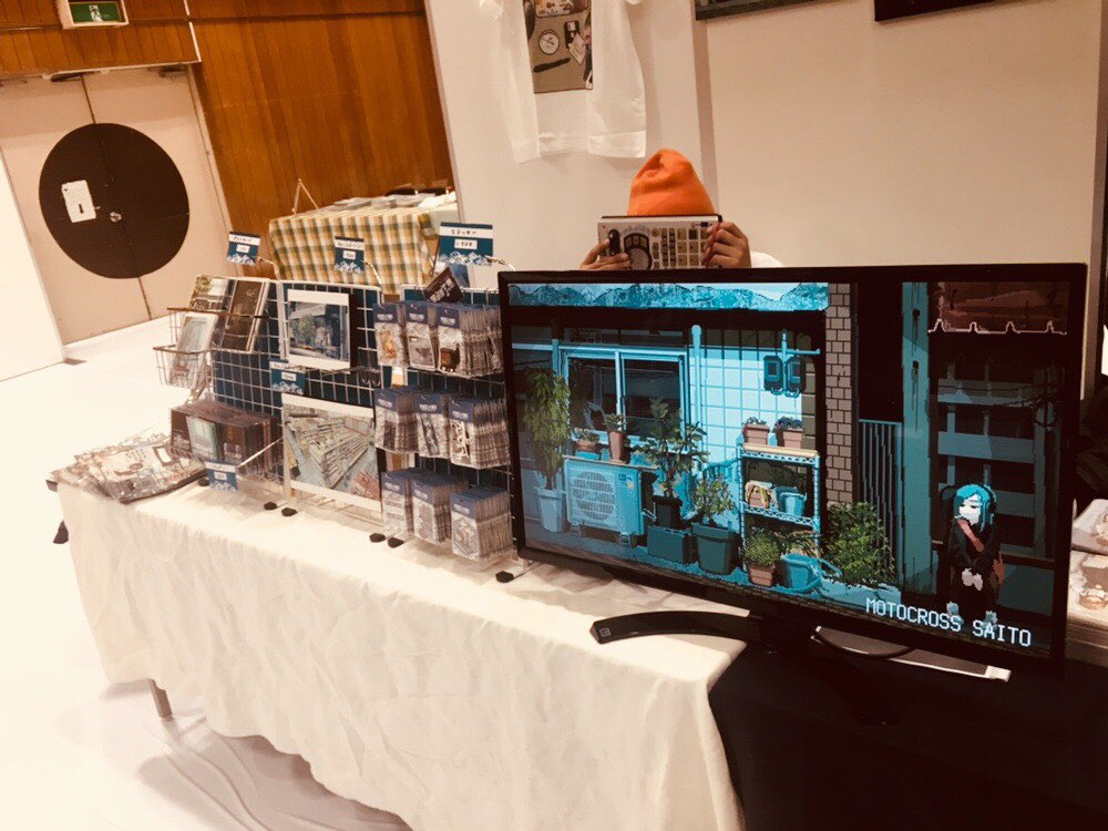 #UPC展示 明日のトークイベントの前に少しだけビートライブ的に音楽流すことになりましたSP404をイジってます。 SP404はこの女の子が持ってるこれ