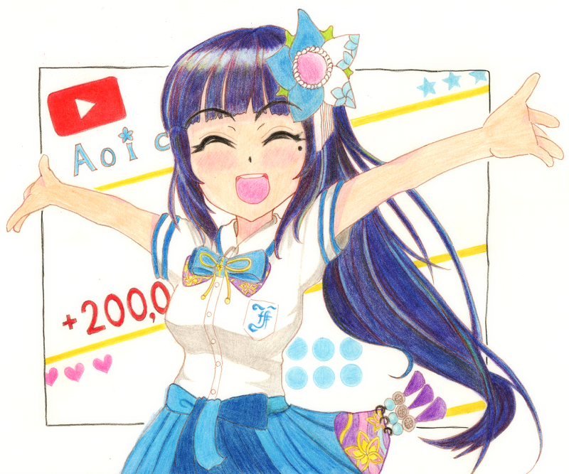 20万人到達おめでとうございます! DN☆PF~!二合目だー!イエェェイ! #葵の絵