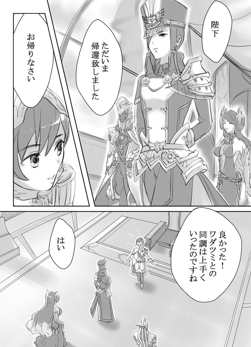 47 102 「こがね色の思い出」(1/3) メレフと同調した後のワダツミとネフェル。 ワダツミとユーゴの「おじいちゃんと孫」的な雰囲気が微笑ましくて好きなんだけど、ネフェルの事も同様に溺愛してたんじゃないかと思って 21/06/24 19:31
