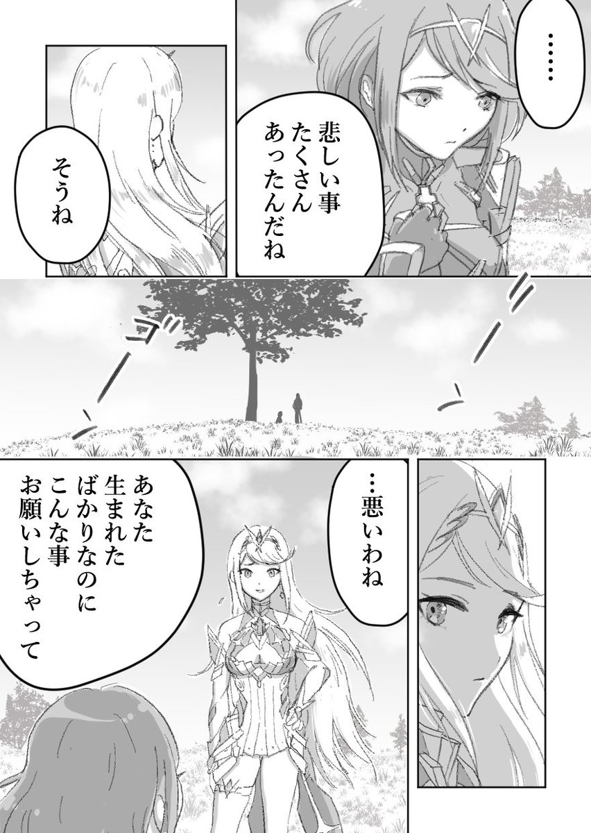 イーラ3周年おめでとうございます❗ 「ミルトの夢 ラウラの夢」 再掲で失礼します。ミルトとラウラが夢見ていた未来を、真剣に考えて描いたマンガです😢 #Xenoblade2Torna_fes21