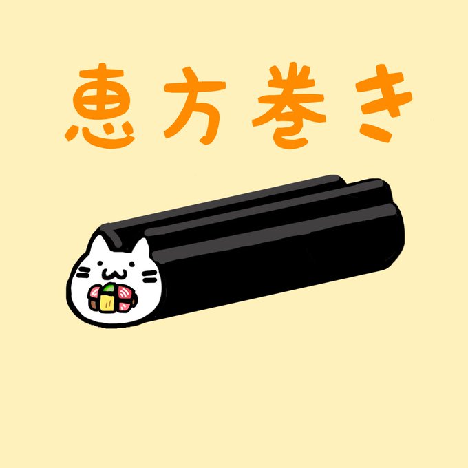23 317 今日は節分! 猫型恵方巻き〜 #イラスト #ネコ #節分 #節分の日 #恵方巻き 22/02/03 13:18