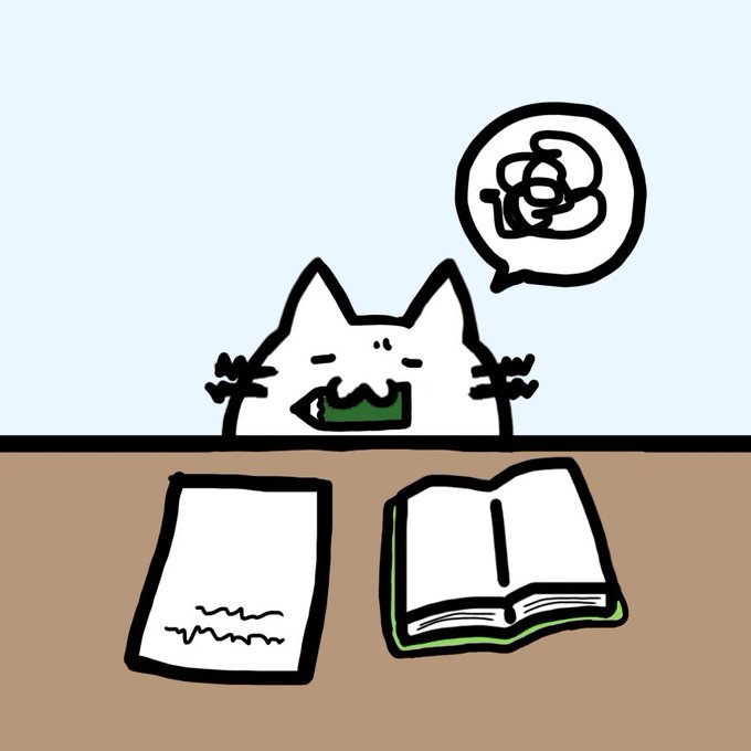 勉強は苦手…モヤモヤ #イラスト #ゆるいイラスト #猫