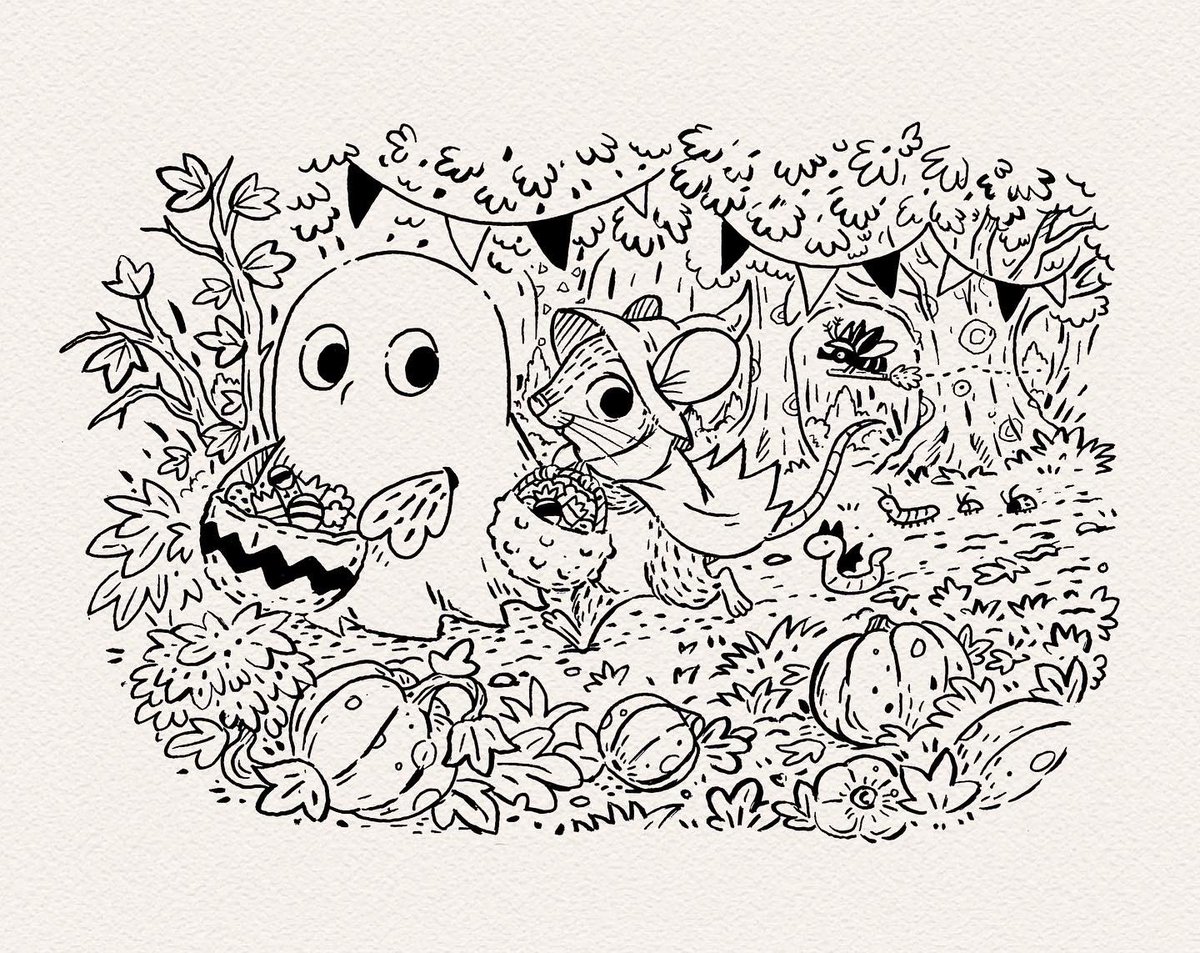 Happy Halloween! Inktober 2021! #matchstickmouse #inktober #art #ghost #trickortreat #witch #halloween