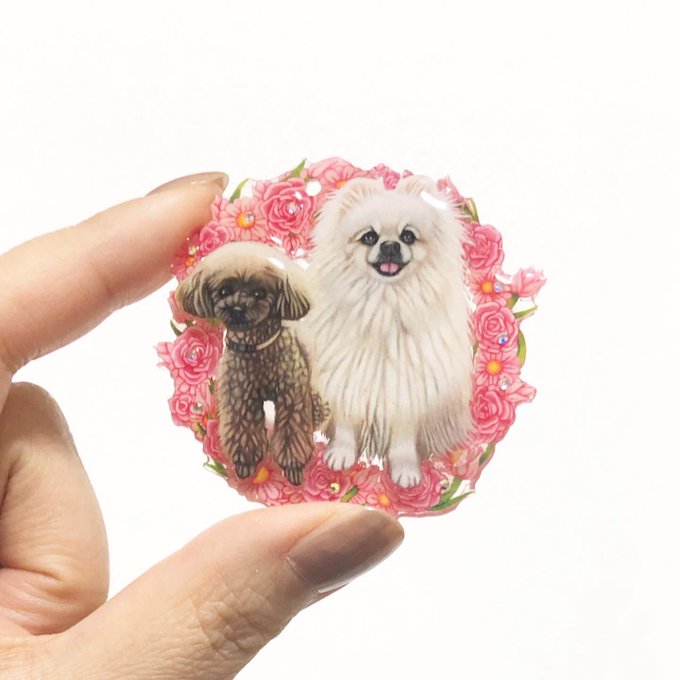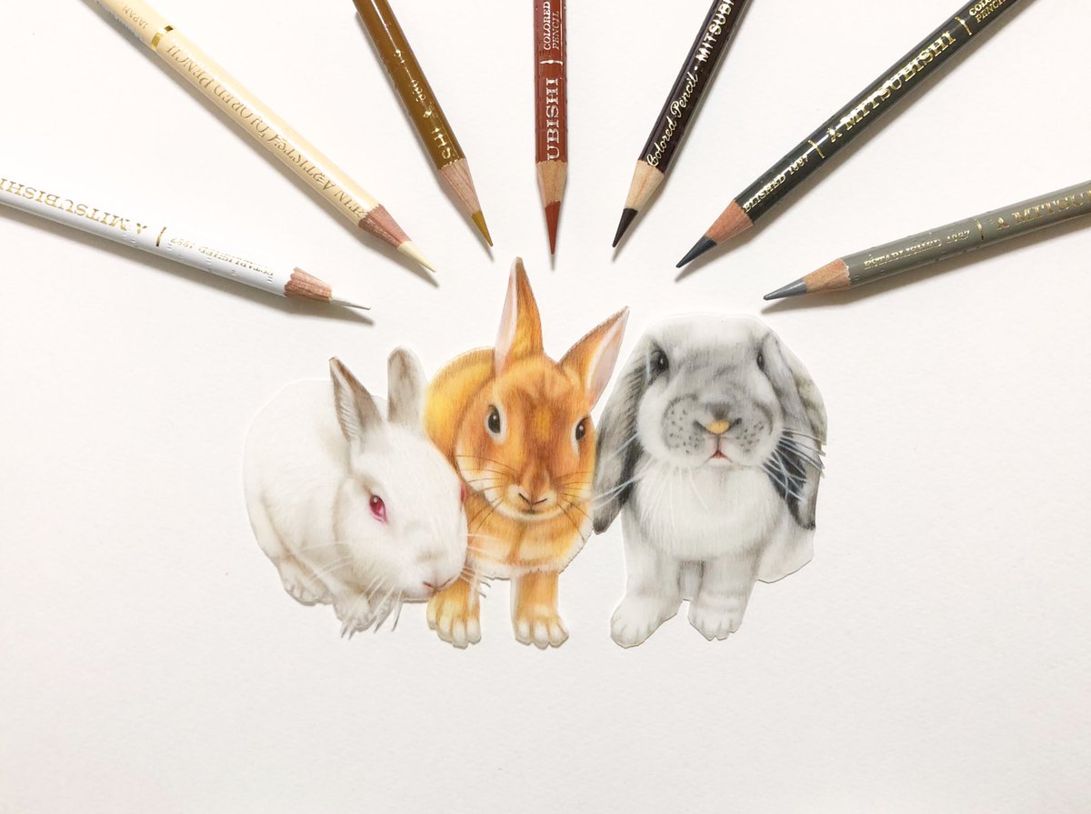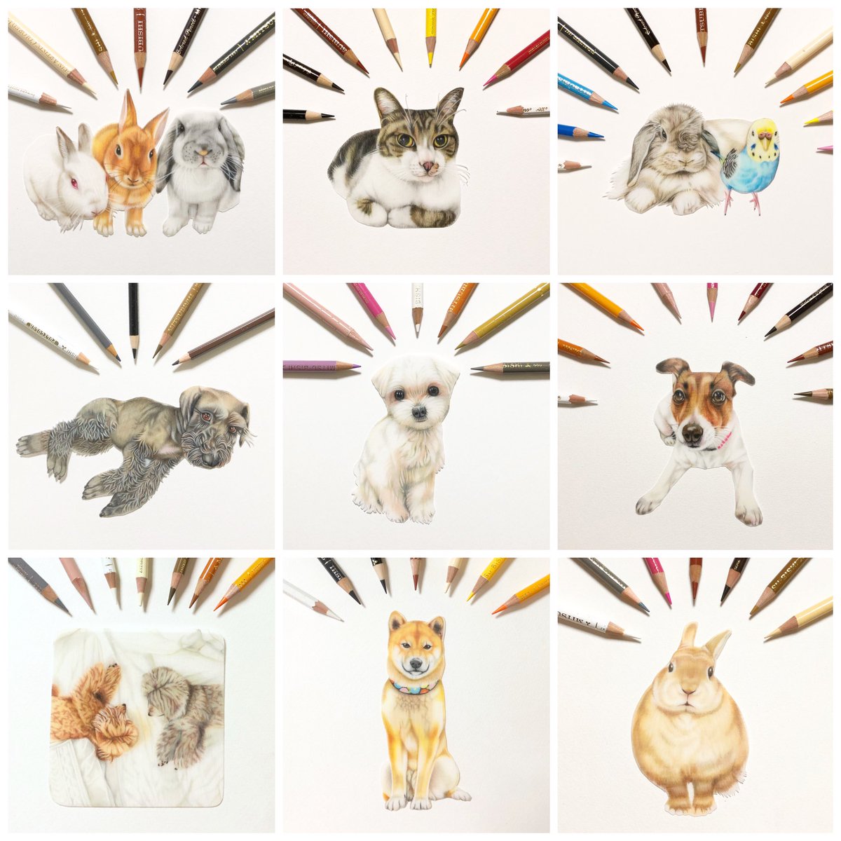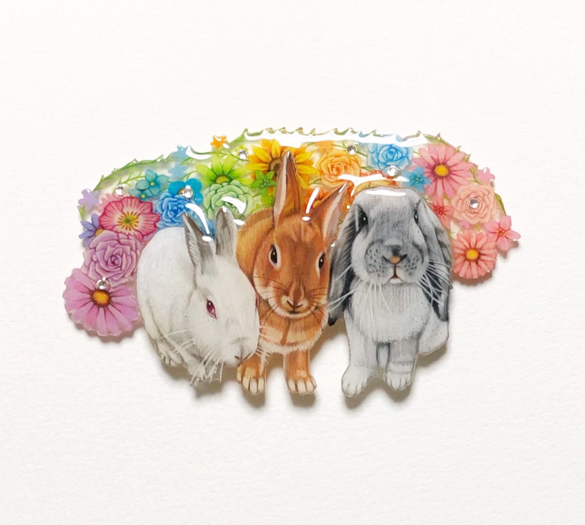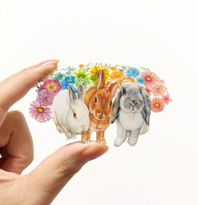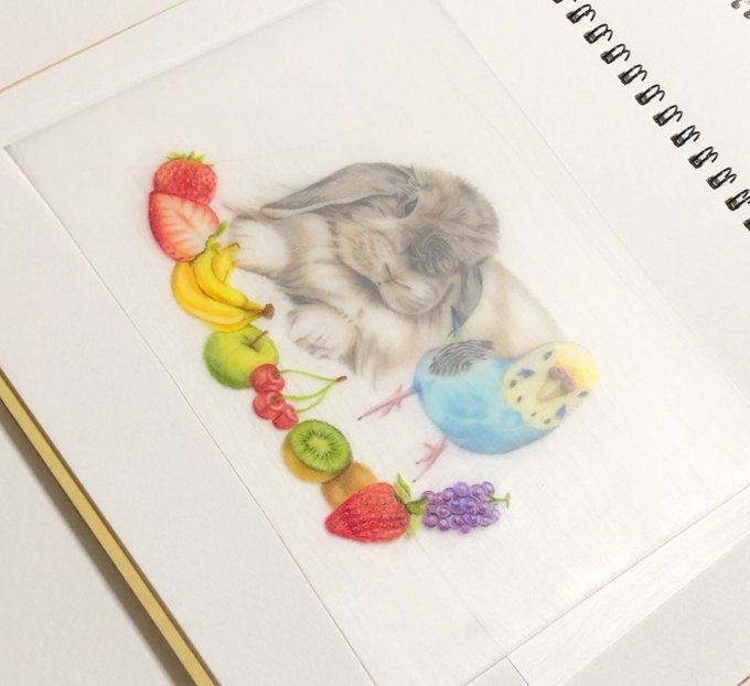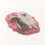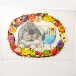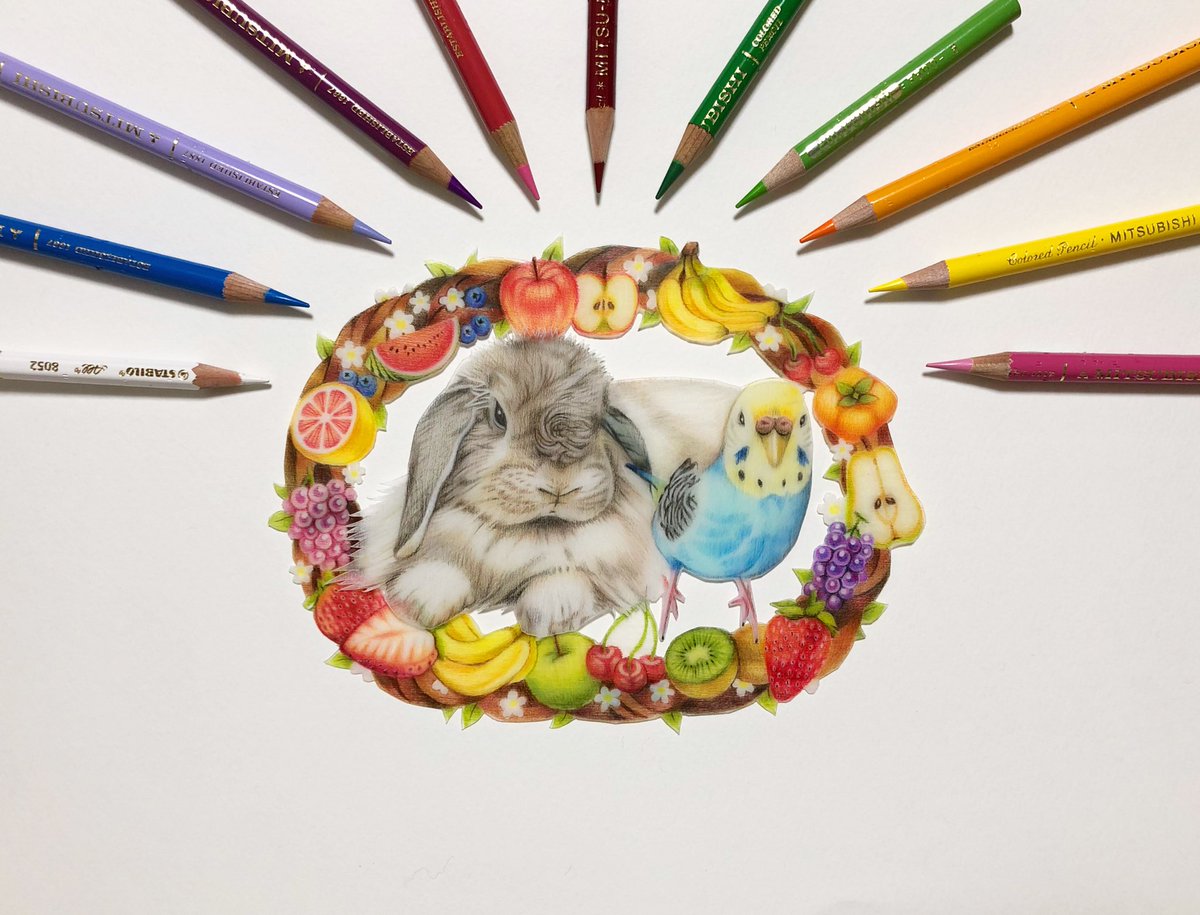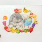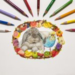 うさぎちゃん&インコちゃんのオーダーブローチを作らせて頂きました🌸 うさぎさんはアメリカンファジーロップという種類だそう🧡本当に可愛くて描いてて幸せでした🤤💓笑 Instagram.com/natsumi_m.art/ #アメリカンファジーロップ #セキセイインコ #色鉛筆 #ハンドメイドアクセサリー #アナログイラスト