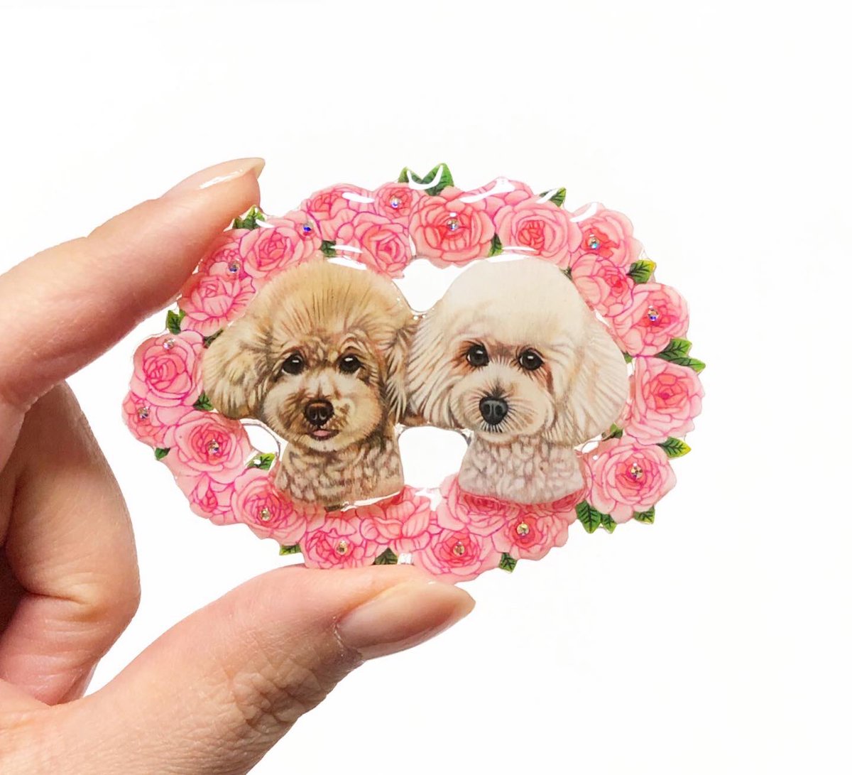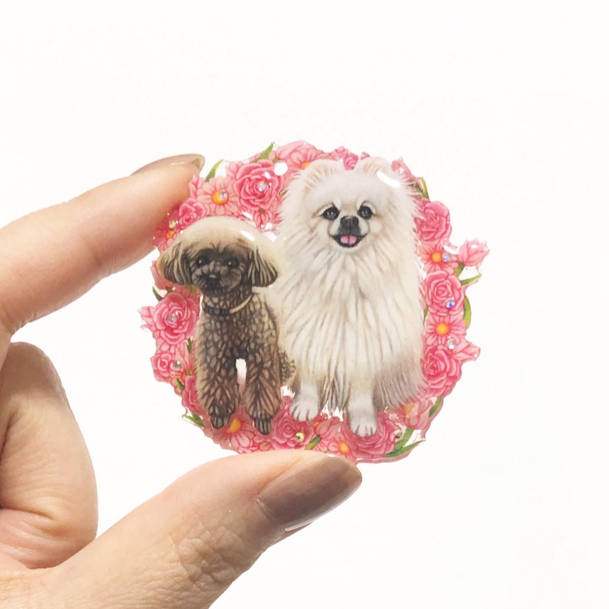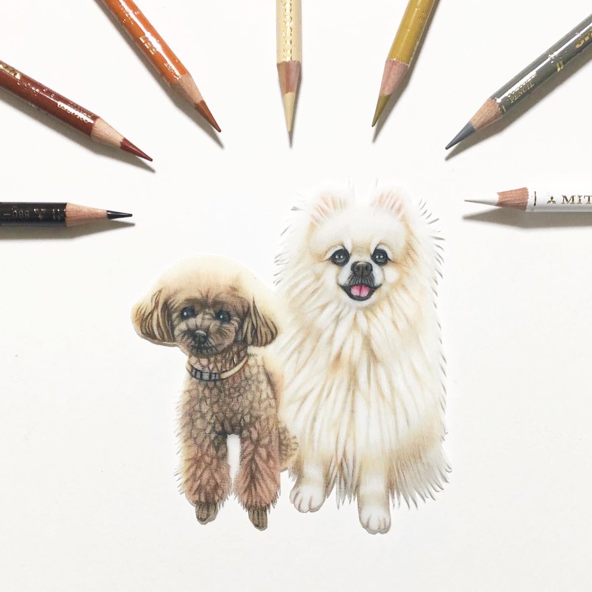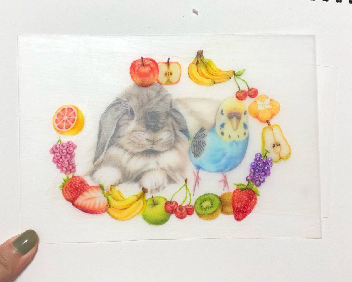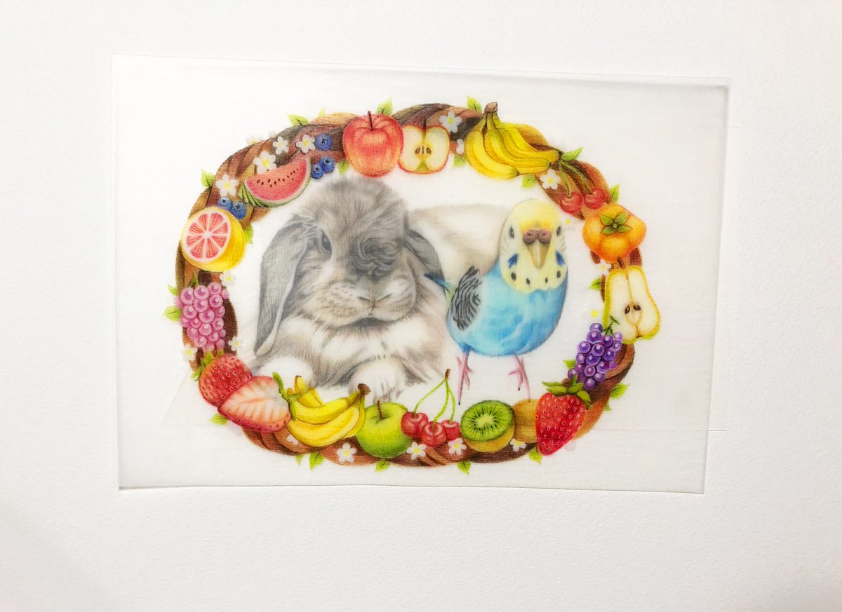 うさぎちゃん&インコちゃんのオーダーブローチを作らせて頂きました🌸 うさぎさんはアメリカンファジーロップという種類だそう🧡本当に可愛くて描いてて幸せでした🤤💓笑 Instagram.com/natsumi_m.art/ #アメリカンファジーロップ #セキセイインコ #色鉛筆 #ハンドメイドアクセサリー #アナログイラスト