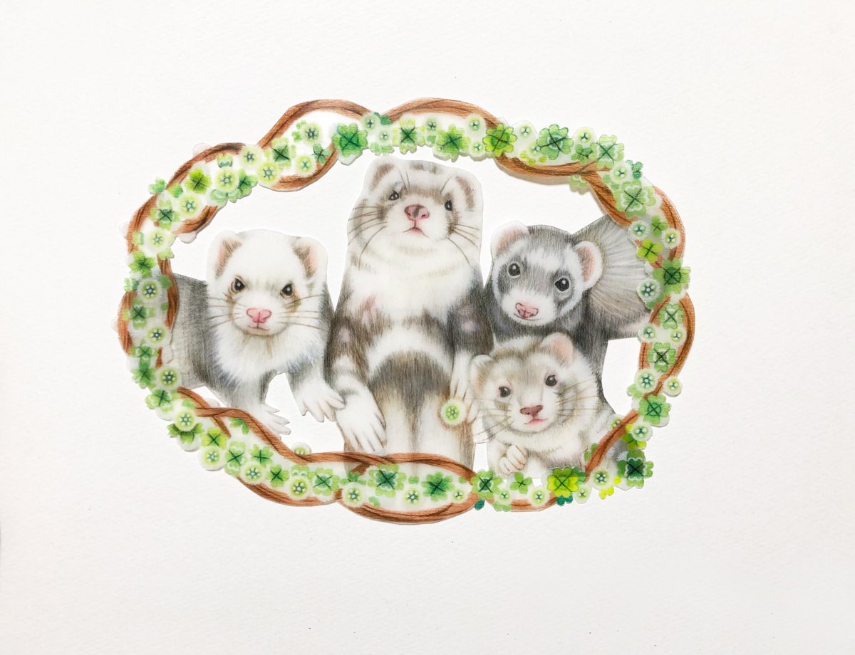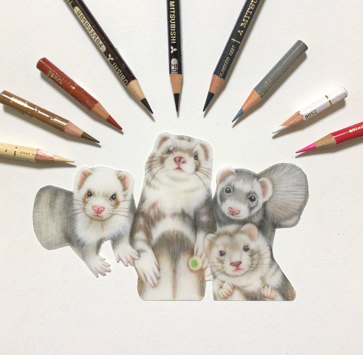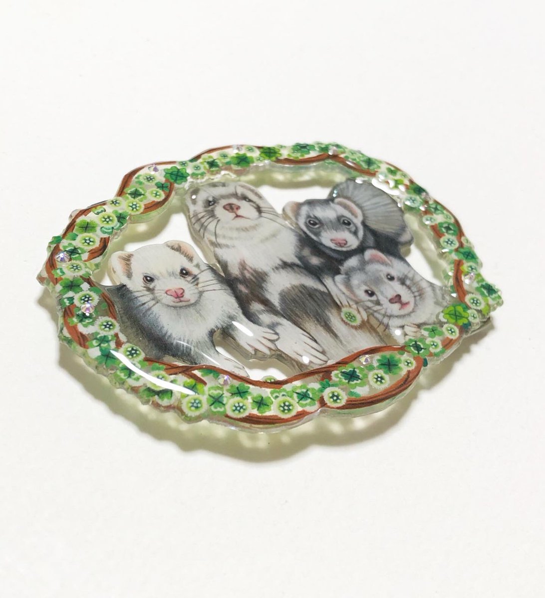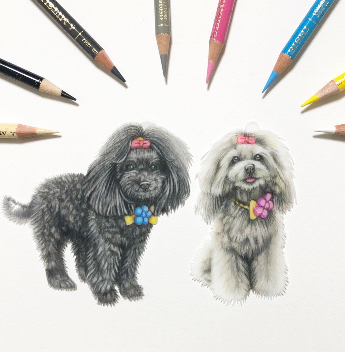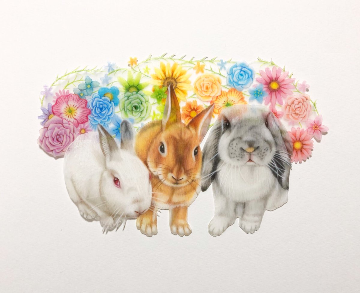 うさぎちゃん&インコちゃんのオーダーブローチを作らせて頂きました🌸 うさぎさんはアメリカンファジーロップという種類だそう🧡本当に可愛くて描いてて幸せでした🤤💓笑 Instagram.com/natsumi_m.art/ #アメリカンファジーロップ #セキセイインコ #色鉛筆 #ハンドメイドアクセサリー #アナログイラスト