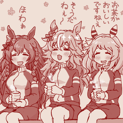 縁側でお茶を飲むのが似合うウマ娘たち