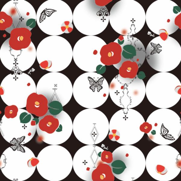 【テキスタイル】 椿の花とてもかわいいですよね この和柄、人気みたいでうれしい 丸いのは練り切りです 夜幻椿(白) – モリグチカ moriguchika.com/graphic/0003-2 #和柄 #イラスト