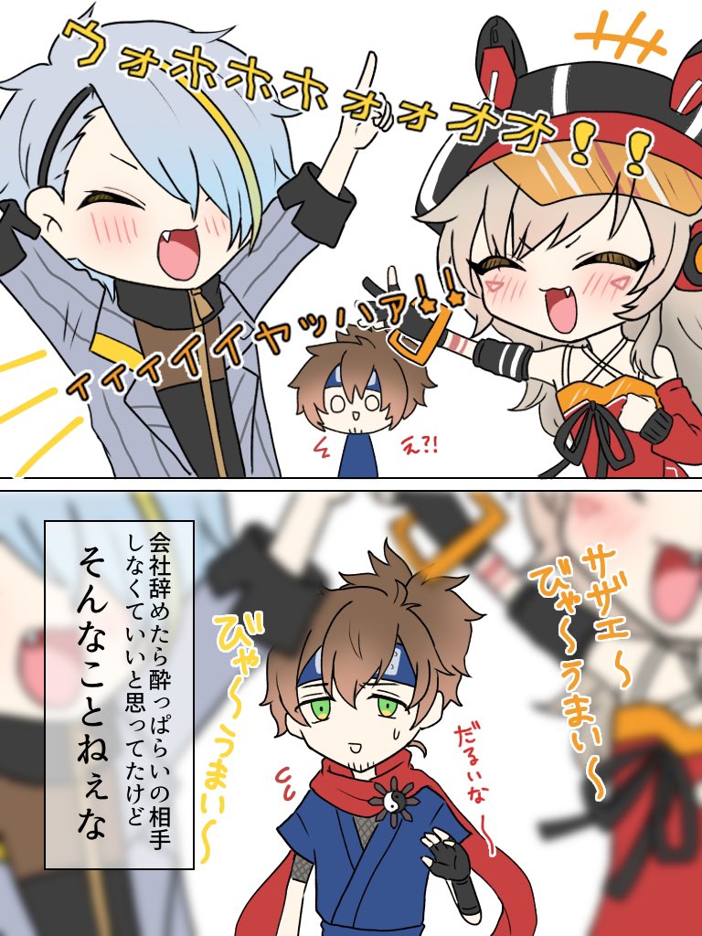 メイカくんとめとちゃんに振り回される乾殿最高でした!! #漢気名画 #引き小森画 #乾忍相書