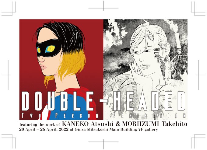 !いよいよ明日から! 在廊は昼過ぎから最後までで、下記の予定です。 20(水)カネコ・森泉 23(土)カネコ・森泉 24(日)カネコ 26(火)森泉 カネコアツシ&森泉岳土 二人展「DOUBLE-HEADED」 会期:4月20~26日 時間:10:00~20:00(最終日〜17:00) 会場:銀座三越 本館7階 ギャラリー twitter.com/bijutsutecho_/…