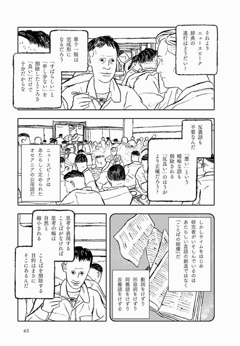 えーっとバズってるのでせっかくなので世界一有名なディストピア小説じゃないでしょうか、オーウェルの「一九八四年」をマンガ化しているのでよかったらチェックしてみてください。電子もあります。ビッグ・ブラザー・イズ・ウォッチング・ユー。 kawade.co.jp/sp/isbn/978430…