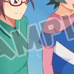 【執筆者・作品ご紹介①】 カラーイラスト部門から、先程も裏表紙でご紹介させていただいたくるみぱんさん( @kurumipan_sinca )のイラストサンプルがこちら。 ちらりと見えておりますが、くるみぱんさんの描く二人の瞳がめっっっちゃくちゃ綺麗なので、本誌をお楽しみにしていただけると嬉しいです。