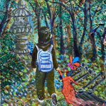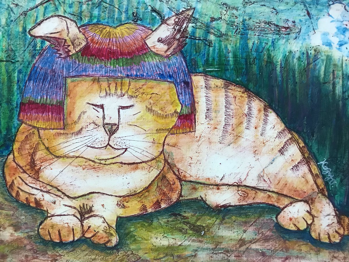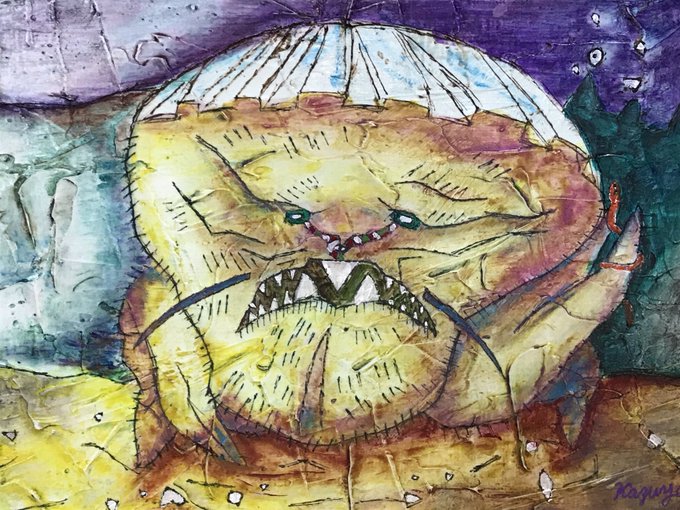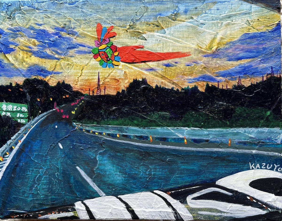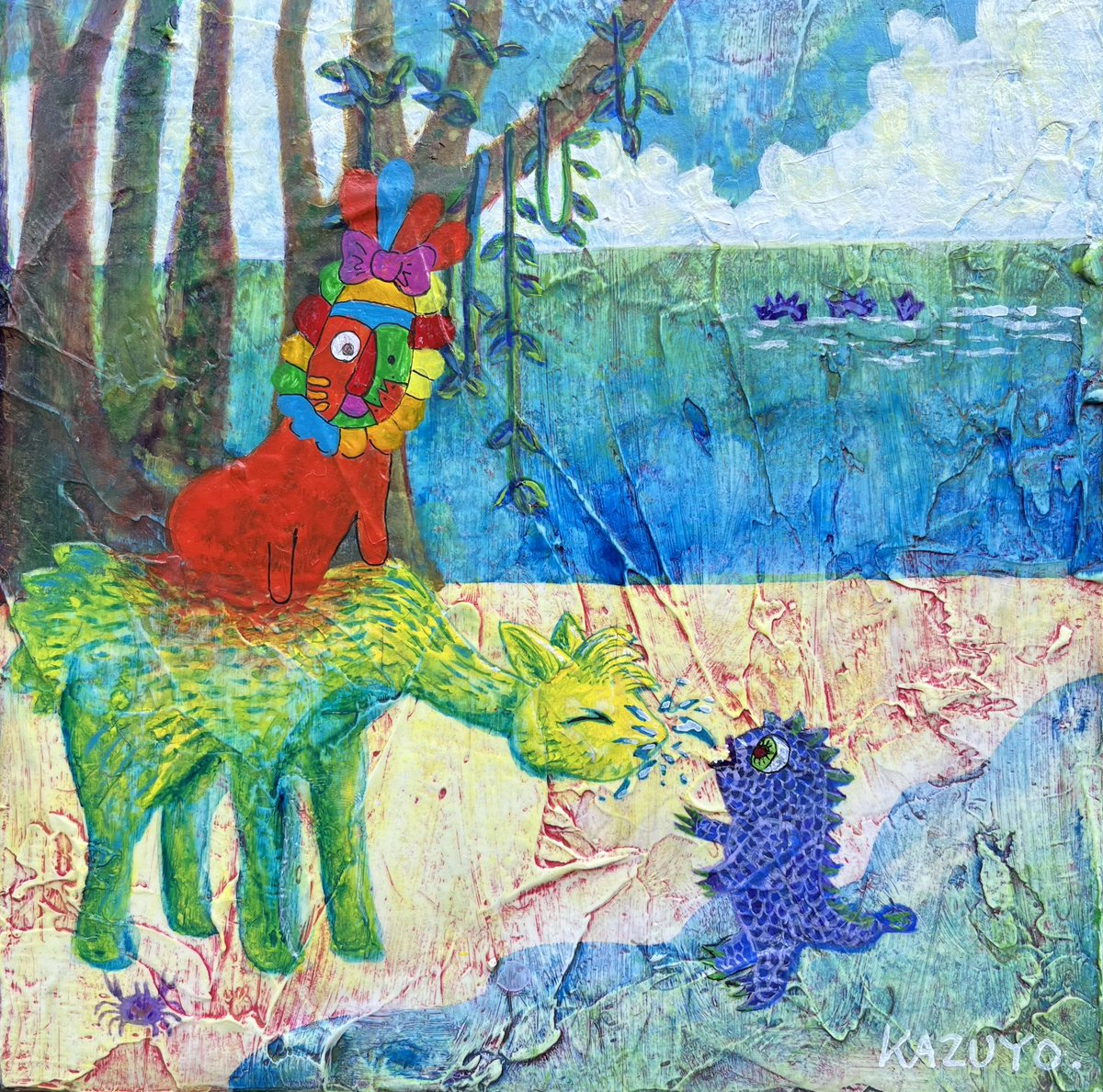 今、住んでいる家の門に神様がいるらしく、その門の神様を描いてます。 今回の絵は、毎日、お家を守って頂いているので、絵の中だけでも休暇をして頂こうかと思い南国で友達の半魚人とバカンスしてるところを描きました。側面とかも頑張りました。よろしくお願い致します。#ZEROTEN2023愛知