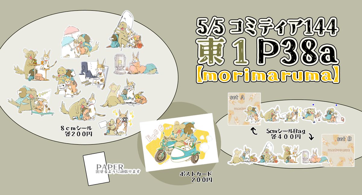 5/5 コミティア144のお品書きです。 【スペース名】 morimaruma 【スペースNo.】P38a 初参加ですが、当日は宜しくお願いします🐱🐶 #コミティア144 #コミティア144お品書き #COMITIA144 #COMITIA144お品書き #イラスト #絵柄が好みって人がいればいいなぁ #絵描きさんと繫がりたい