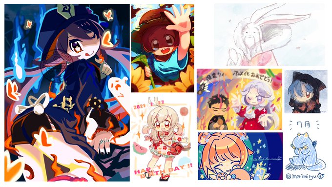 #今月描いた絵を晒そう 思ったより描いてたー まだどういうのが描きたいかあんまり分かってないから、とりあえずいっぱい描いてく 8月はオリジナルもふやしたいな🌱 #絵描きさんと繋がりたい #イラスト好きな人と繋がりたい