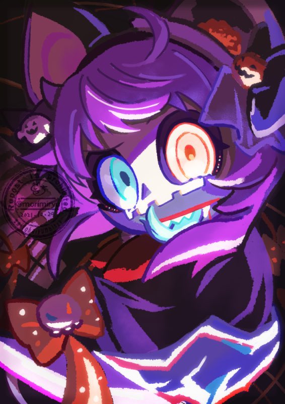#ハロウィンモンスター誰デザ でたん当したイラスト、に、はいけいを描いた絵です 大人で、かっこよくて、こわくてあぶないモンスター…描いたことないばっかりで、いっぱい考えて、とっても面白かったです! よかったら、ぼくのデザインがどれか当ててみてね🌱 twitter.com/morimiryu/stat…