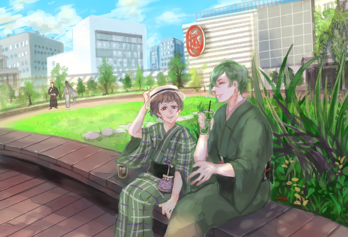 鶯丸・平野軽装実装記念。 三越デパートの屋上で涼んでてほしい