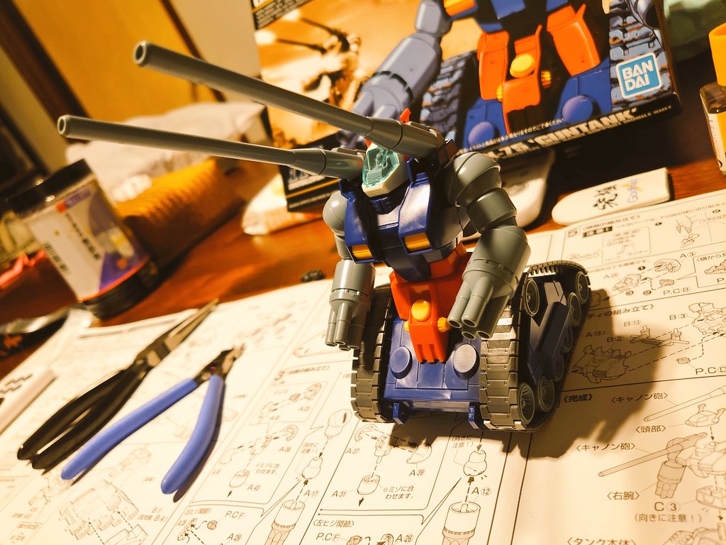 HGUCガンタンク 無事腕もくっつき、 素組み完成ですヽ(・∀・)ノ しばらく会社デスクに 飾ってから ディティールアップして いきます😎 #ガンプラ #ガンプラ好きと繋がりたい #ガンプラの画像を貼るとRTされると聞いて