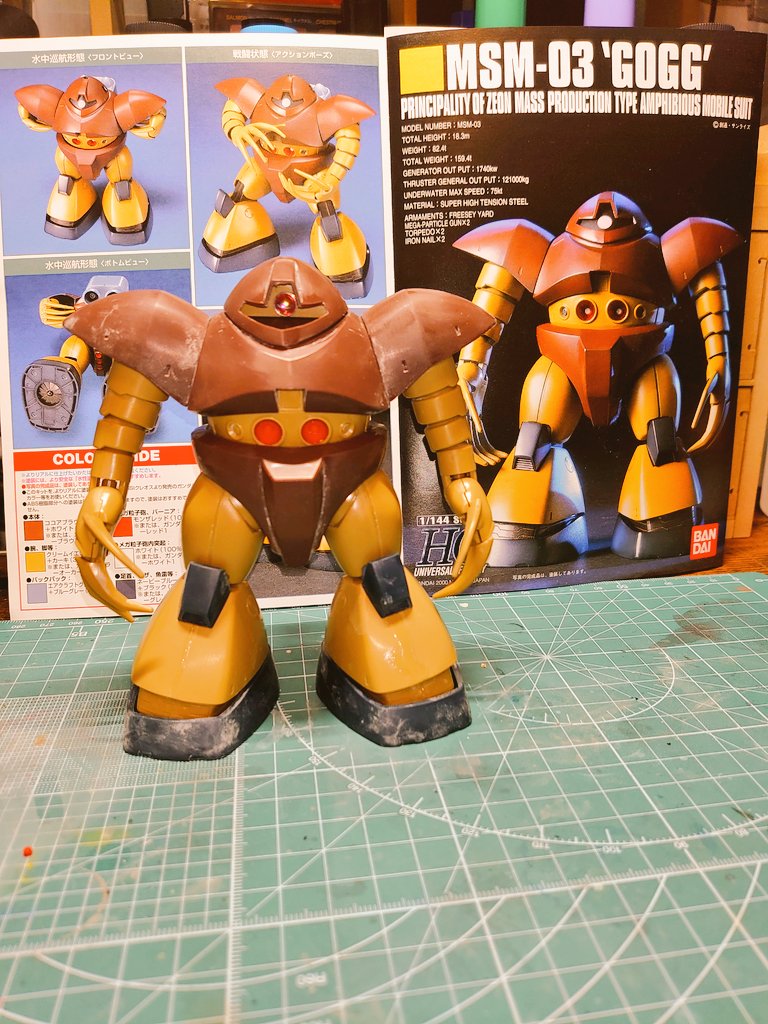 HGUCゴッグ 申し訳程度のデカール貼り+ トップコート終了しました😁👍 モノアイ最後まで迷いますね😂 夜勤なので一旦寝ます💤 皆様良い週末を(^-^)ゝ ジーク・ジオン💪 #ガンプラ #ガンプラ好きな人と繋がりたい #ガンプラの画像を貼るとRTされると聞いて