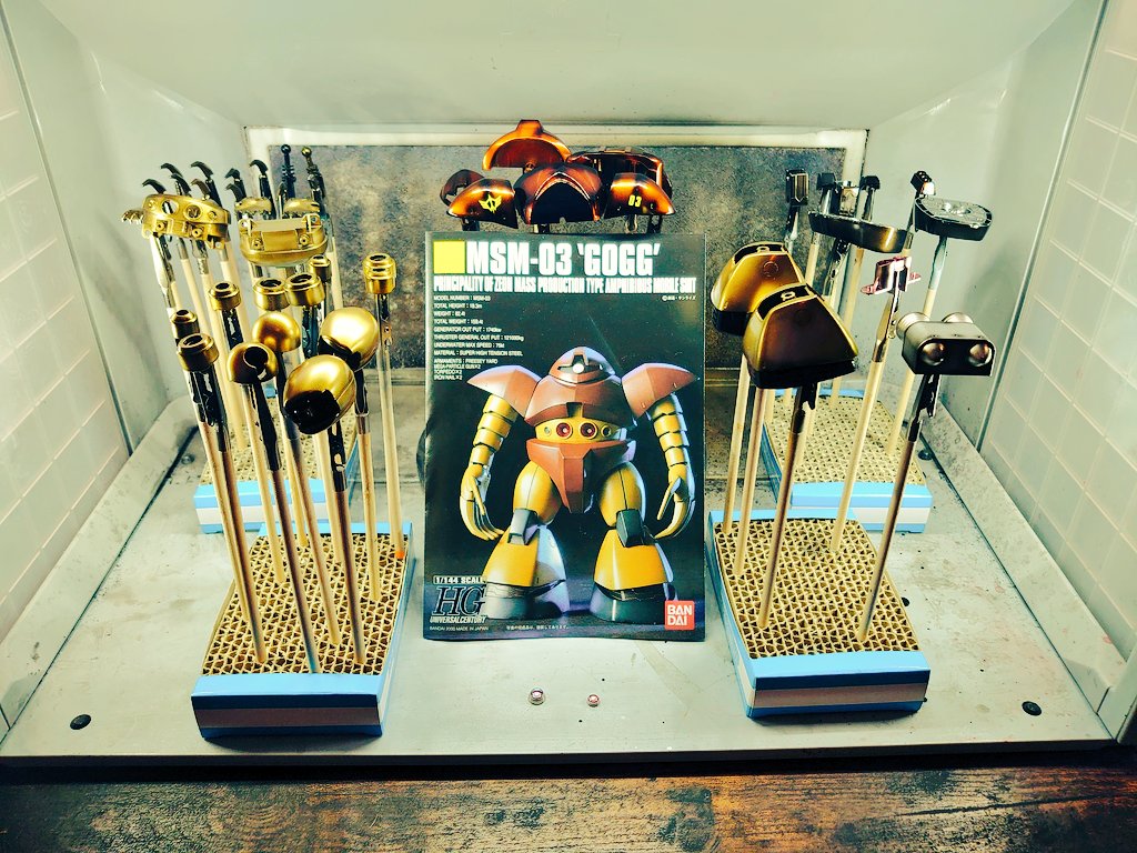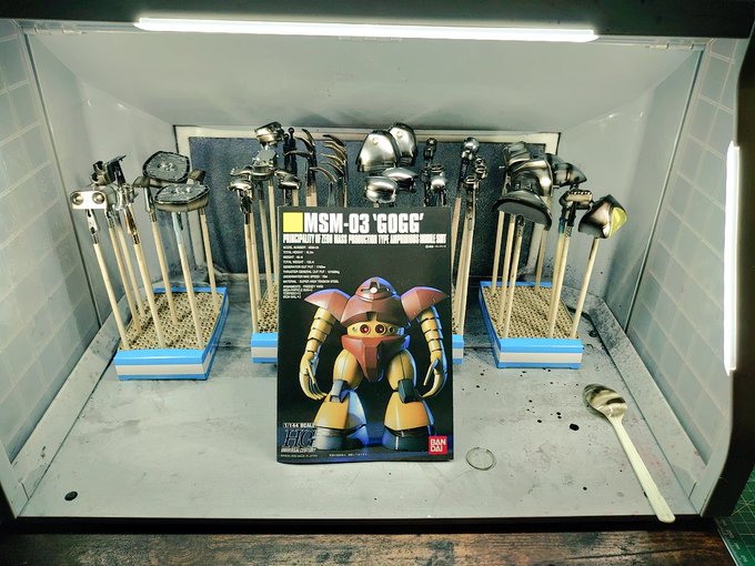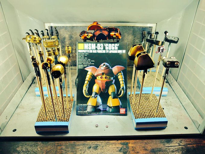 HGUCゴッグ グラデーション塗装 やはり難しいです😂 圧力等調節してるのですが なかなか上手くいきません( ;∀;) #ガンプラ #ガンプラ好きな人たちと繋がりたい #ガンプラの画像を貼るとRTされると聞いて