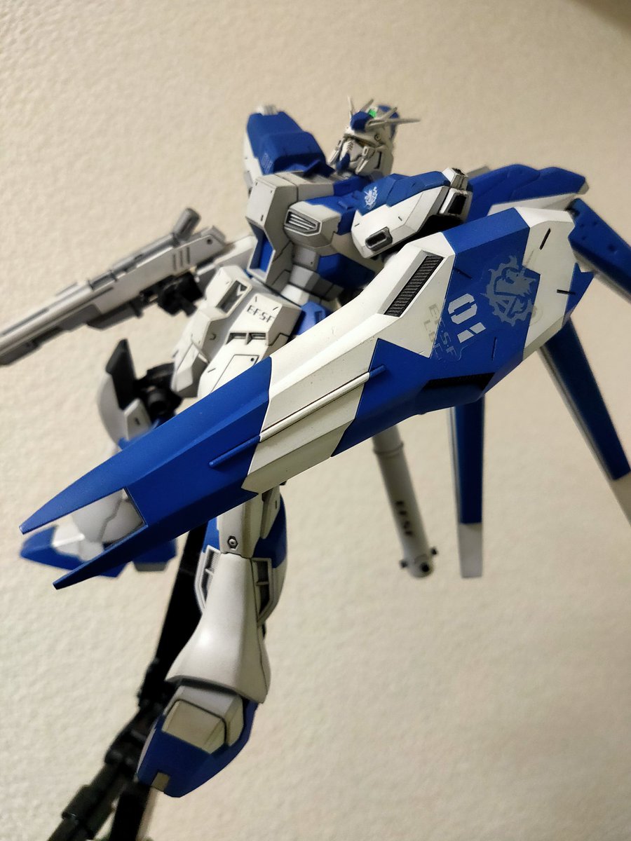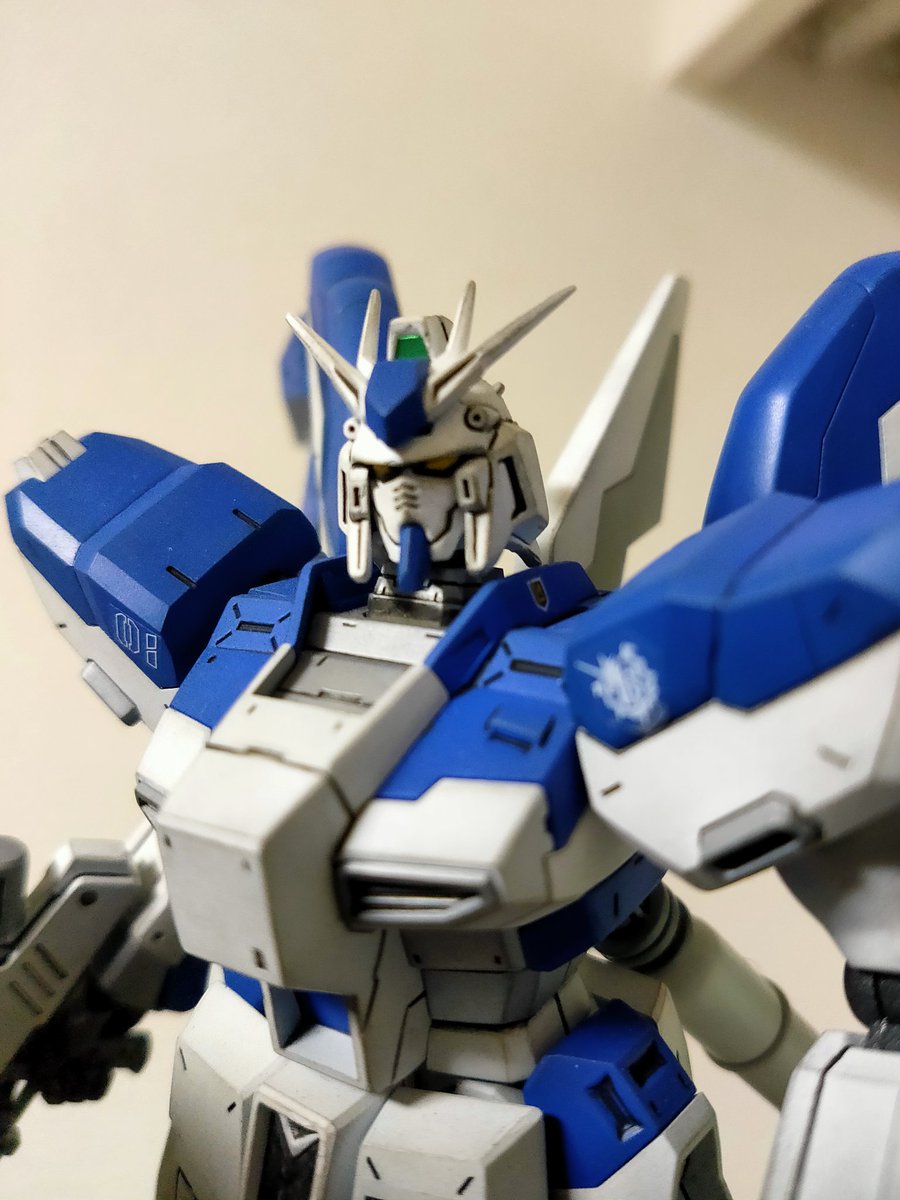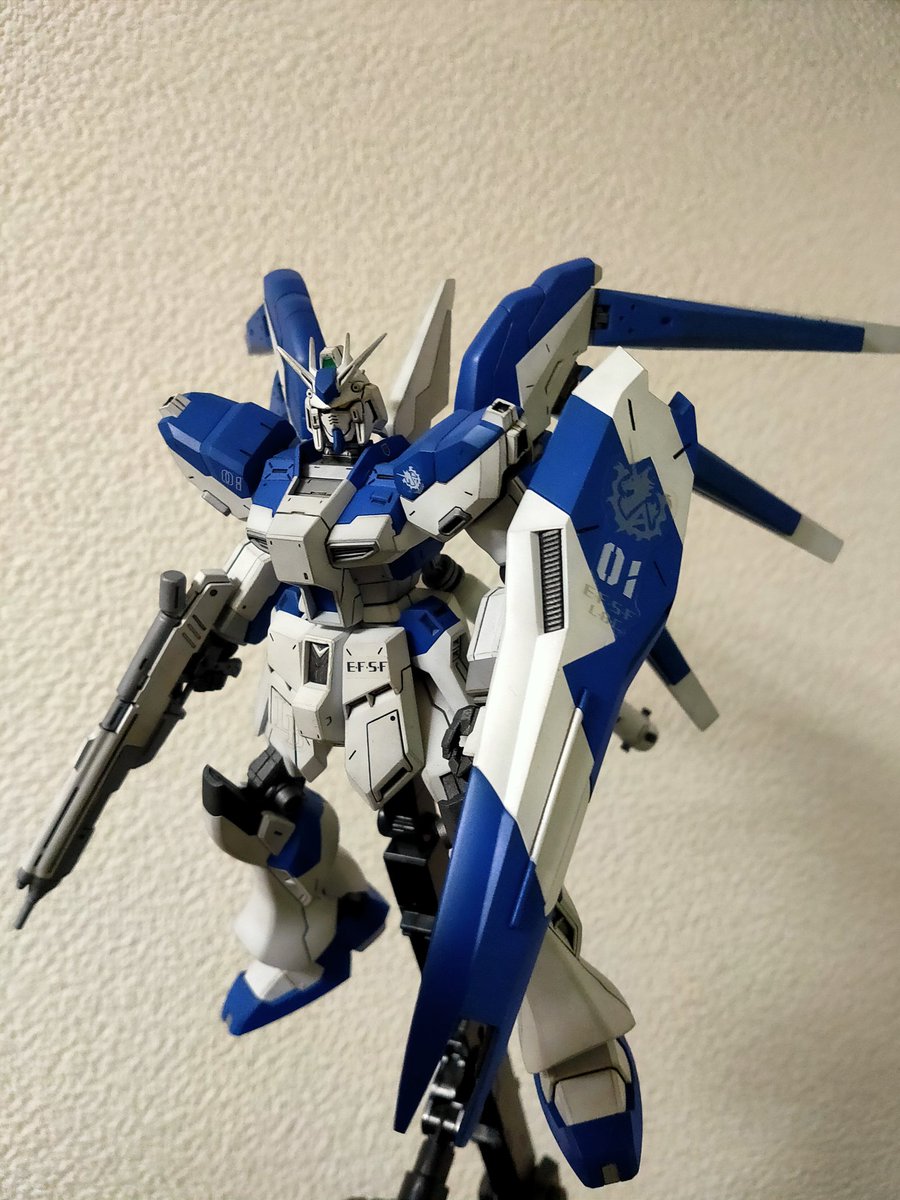 HGUC Hi-νガンダムです。 RGじゃないですけど十分な良キットですねー。 いい感じの青色が出せたかな☺ #ガンプラ好きと繋がりたい #ガンプラ #ガンプラの画像を貼るとRTされると聞いて