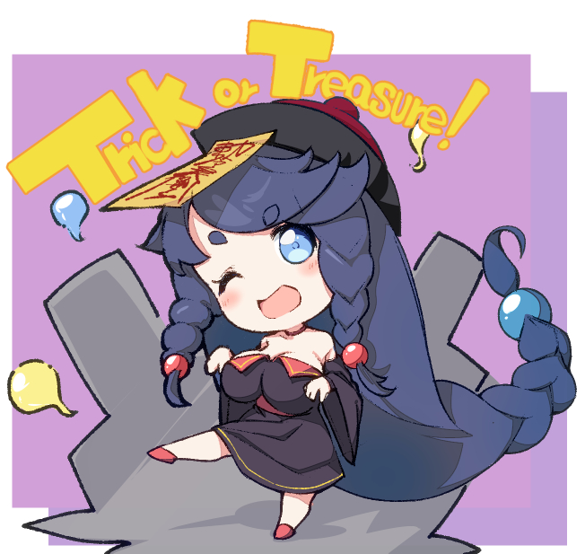 ハロウィン絵、ちびキャラですが何とか間に合いました。キョンシーコスのアミアンです。 #ミストレ #ミストトレインガールズ