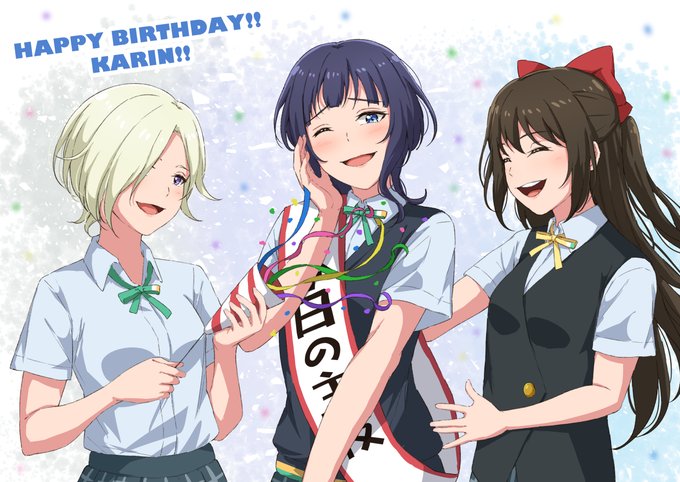 果林ちゃんお誕生日おめでとう!!🎉スクスタも沢山思い出をありがとう……🎮🌈生放送とっても楽しみ……🐰🎩👠💧 #虹ヶ咲