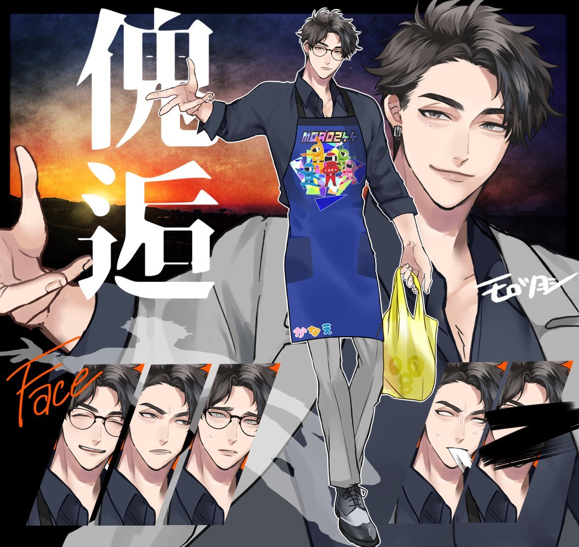 ここ最近の立ち絵だけど👶 #このタグを見た人はラフ画とその完成絵を見せる 4枚目のラフの蛇ピと眼鏡は完成レイヤーの消し忘れです。