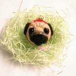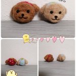 ひよこのスタンプが可愛くて乱用😂 オーダーお待たせしました! トイプードルちゃんです💓💞 こちらはいちご帽子のストラップになりますー🎶 #羊毛フェルト #ハンドメイド #ハンドメイド好きさんと繋がりたい