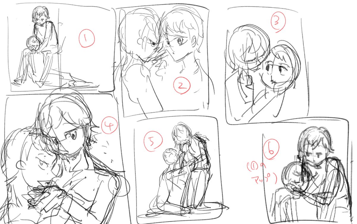 今回の表紙カラーイラストの経緯です。せっかくなのでタグ付きでツイート(需要があると思うので) 表紙ラフの段階で何人かに見てもらって一番人気だったの4で進めましたが、私は2と5もお気に入りでした! #はしっこinfo