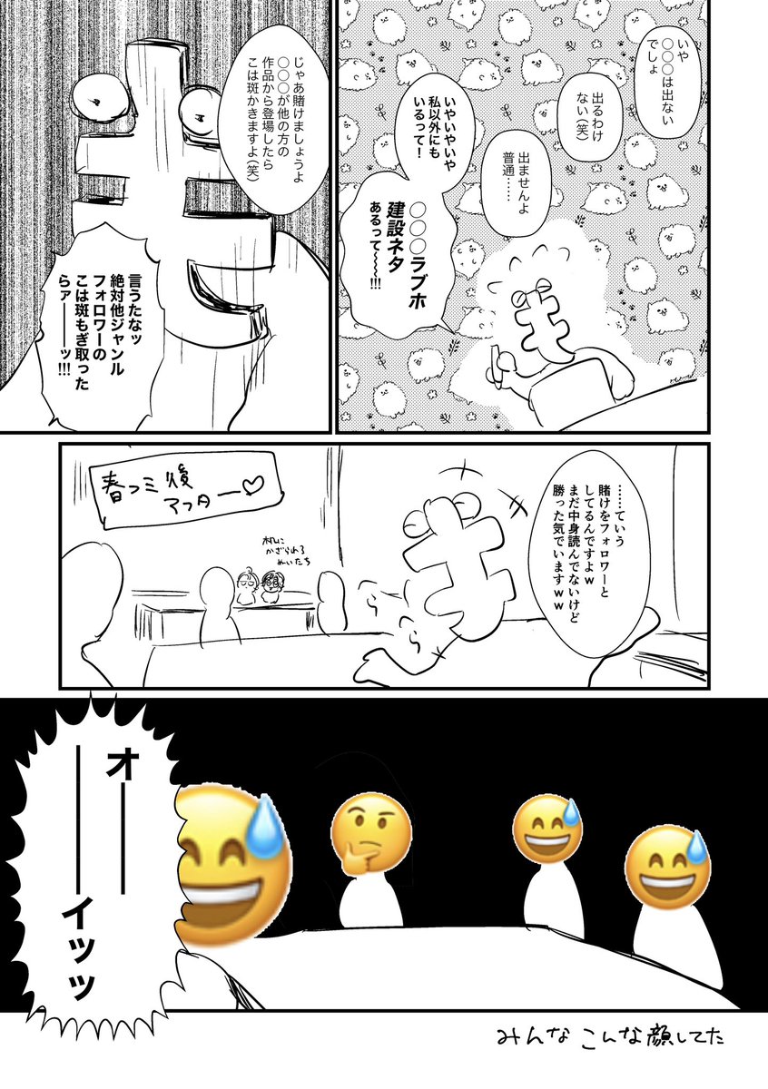 5 17 こは斑合同誌「HOTEL NoName」(@hotel_noname)執筆中のレポ漫画を描きました🏩お誘いありがとうございました!賭けは大惨敗で〜す🫠 23/04/17 01:03