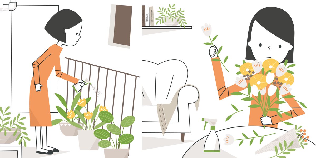6 110 緑色のスプレーと、ベランダの鉢植え。 #イラスト #illustration #イラストレーション #イラストレーター #デザイン #植物 22/12/29 11:48