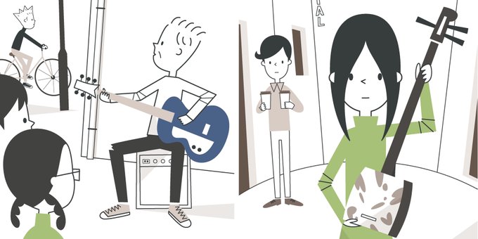 三味線とギター、コーヒーをふたつ。 #イラスト #illustration #イラストレーション #イラストレーター #デザイン #音楽
