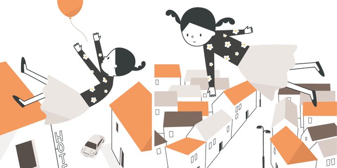オレンジの風船と、街路灯。 #イラスト #illustration #デザイン