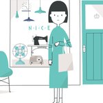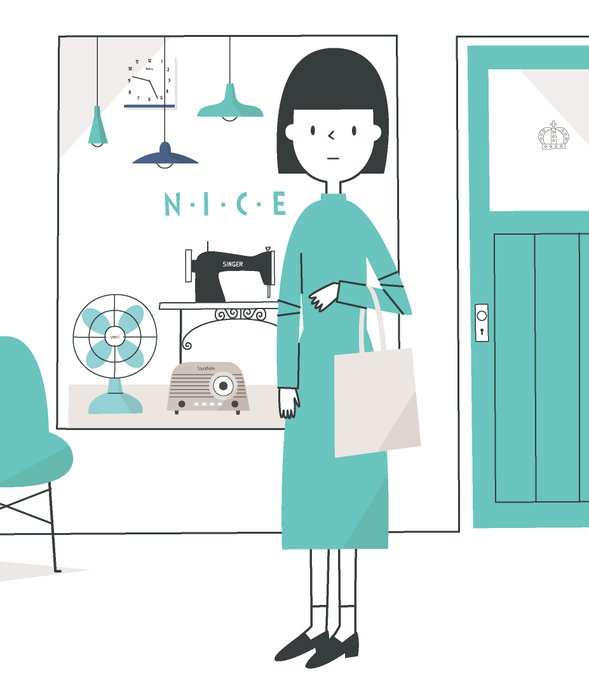 水色の扇風機、ラジオとミシン。 #イラスト #illustration #デザイン