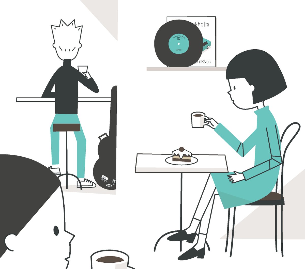 チョコレートケーキと、ギタリスト。 #イラスト #illustration #デザイン #音楽