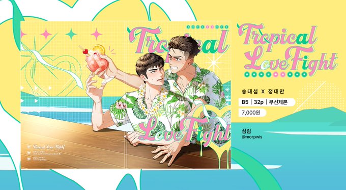 태섭대만 신간 <트로피컬 러브 파이트> 선입금/ 통판 폼 선입금은 7월 대운동회에서 통판은 행사 이후 진행됩니다. 자세한건 링크를 확인해주세요. 🌴기간: 7월 8일 12:00~7월 12일 23:59 🌴샘플: posty.pe/86upjn 🌴선입금폼: witchform.com/deposit_form.p… 🌴통판폼: witchform.com/deposit_form.p…