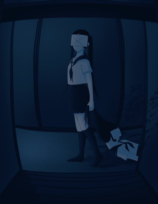 #4月になったからフォロワーさんに自己紹介しようぜ 病みセーラー服を主食としていて女子高生の不健康な肩甲骨の裏側に住んでおります。もるめのと申します🫶 こんな絵描いてるけど怖くないよ〜🙌✨