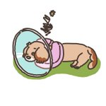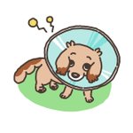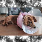 むちうちパラボラ期 傷口に届いちゃったから、二重になっちゃったね… #ミニチュアダックスフンド #イラスト #懐かしシリーズ #去勢手術後 #ダックスにエリザベスカラーは難しい #もう何も受信しない