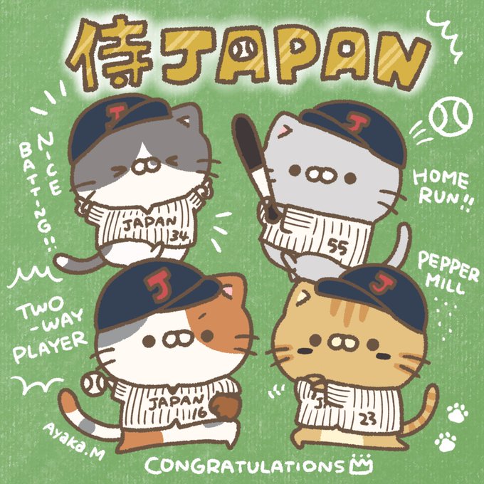 #WBC2023 #侍JAPAN 優勝おめでとうございます(灬ºωº灬)⚾️🏆 改めてすごい試合やった👏 最後の大谷選手は鳥肌もんでした(•ө•) #イラスト