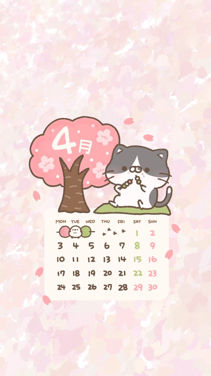 4月のカレンダーができました|・ω・*)🌸 花より団子なHACHI(•ө•)🐈⬛🍡 新年度からの待受に是非( *˙ω˙*)و #イラスト #壁紙配布 #4月 #カレンダー