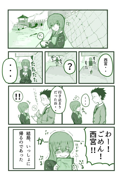 聲の形再放送してますので過去に描いた漫画再掲します 西宮さんが歩いて行った方向って行き止まりになってるんですよね、、 #聲の形