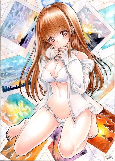 3 14 キャラ部分は落書き時のを清書って感じで B5サイズに入れ込んだら背景余白がめっちゃあって 落ち着かなかったので 賑やかしにポラロイド内に夕日や朝日を漬け込みました キッチリ描画よりスケッチレベルで簡素な入れ込みにしてますキャラより目立ちそうで・・・w #アナログ絵 #オリジナル 23/07/15 19:30