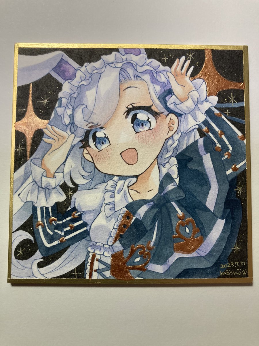 6 45 豆色紙にみこち 偏光色ラメと銀色泊使用♪ 点だと箔押し失敗しにくい♪ #アナログ絵 #ホロライブ #miko_Art 23/07/16 00:19