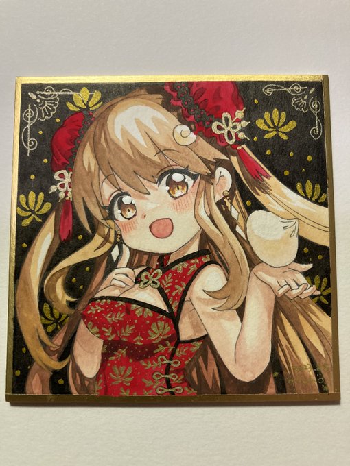 豆色紙にチャイナ娘♪ #アナログイラスト #オリジナル