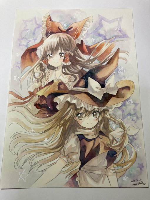 13 64 れいまり 落書きだった子を清書して色入れ 大事に大事に取ってたBBケントに水彩塗り 分離色モリモリ(*•̀ᴗ•́*)و ̑̑ #アナログイラスト #東方 23/08/14 17:09