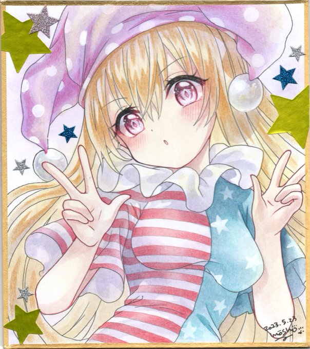 2 4 くらうんぴーすぴーす ピンクの★色消し飛んでる・・・💦 #アナログ絵 #東方 23/05/23 16:32