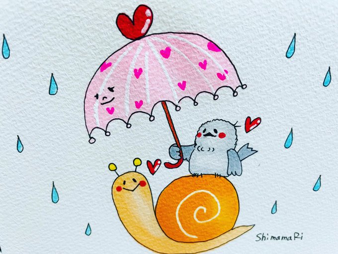 4 72 雨降りデート❤️ #シマエナガ #かたつむり #ゆるいイラスト #イラスト好きな人とつながりたい #イラスト 22/06/22 10:09