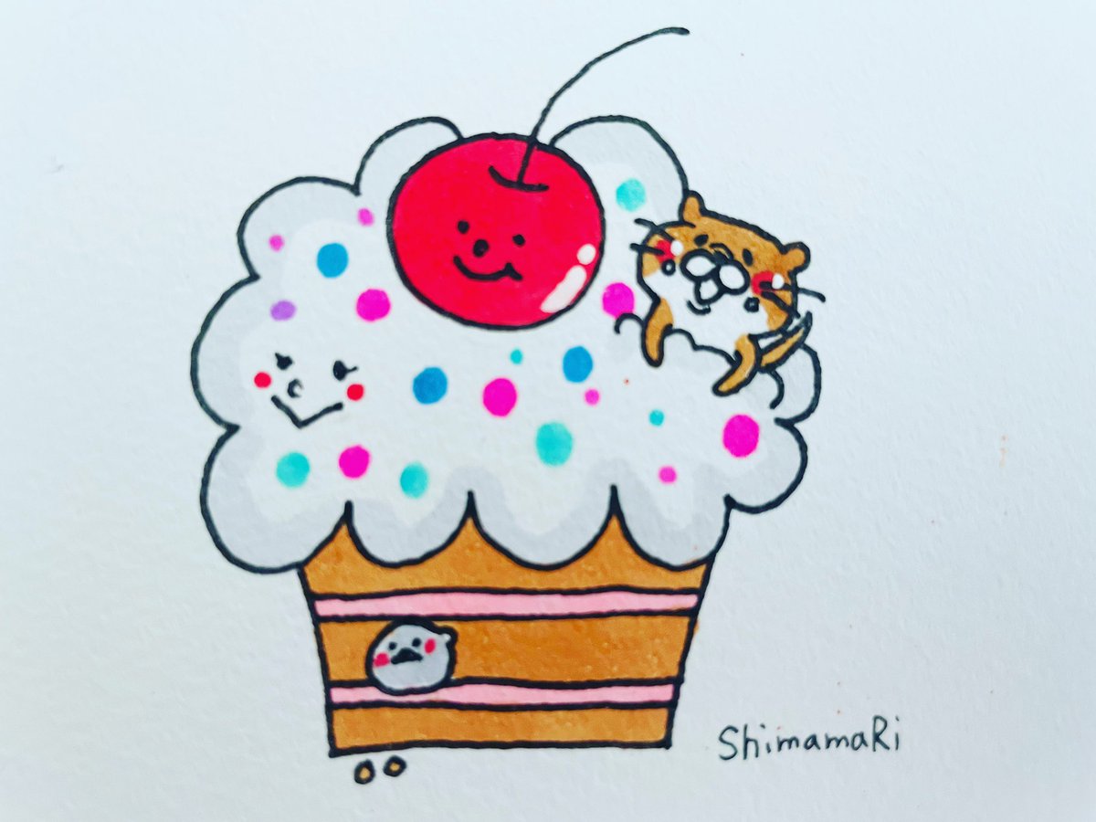 毎月8日はホールケーキの日✨ らしいです…知らんけど🤣 #イラスト #イラスト好きさんと繋がりたい #アイビスペイント #コツメカワウソ #シマエナガ #ホールケーキの日