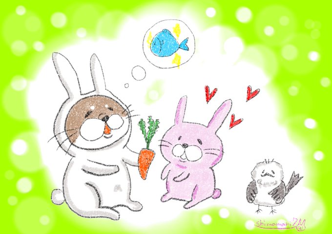 今年はウサギさんと仲良くね✨ #イラスト #イラスト練習中 #イラスト好きな人とつながりたい #コツメカワウソ #シマエナガ #うさぎ #nft #nftart